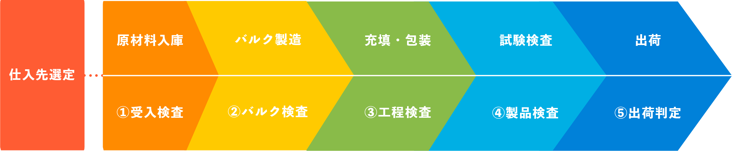 製品に使用する原料、資材の品質を確認し、規格に適合したものだけを使用します。
